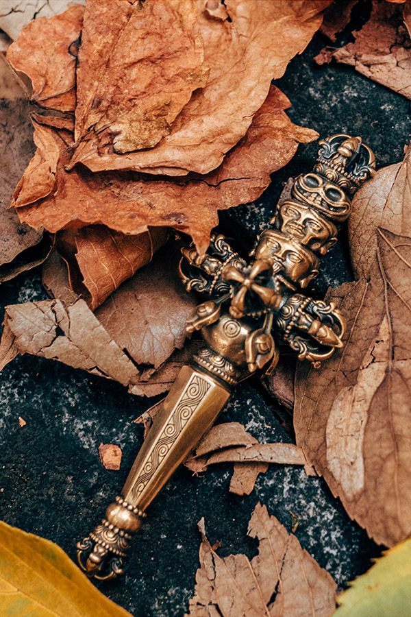 天杖「梵文:Khatvanga;藏文:Kha-tam-ga,Kha-twam-ga」又稱金剛杖,是藏傳佛教修行者所持的一種法器,是象徵意義最爲複雜的法器之一,主要象徵終極菩提心是大樂和空性的結合,相傳它是從密教法器中的獨股杵演變而成。